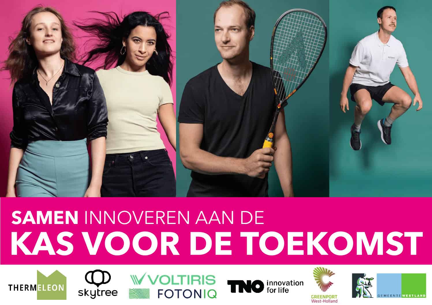 Hoe ziet een kas er over enkele jaren uit? Skytree, Thermeleon, Voltiris en FOTONIQ hebben daar een duidelijk beeld van. Met elkaar wonnen zij onlangs de ideeënwedstrijd van het Fieldlab Kas voor de Toekomst. De standaard Venlo-kas is een groot succes, maar om klimaatneutraal te worden is er echt radicale innovatie nodig. Samen willen zij dat versnellen. Amanda, Jildou, Kaz en Bob geven de startups een gezicht en laten zien hoe uitdagend de sector is voor wie het verschil wil maken.